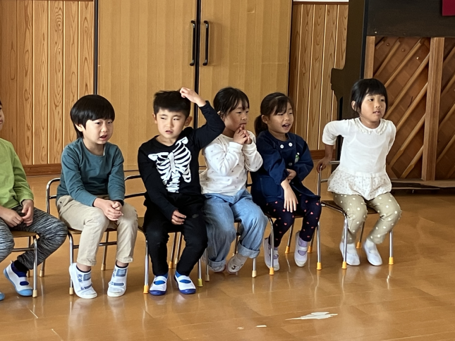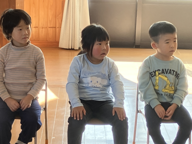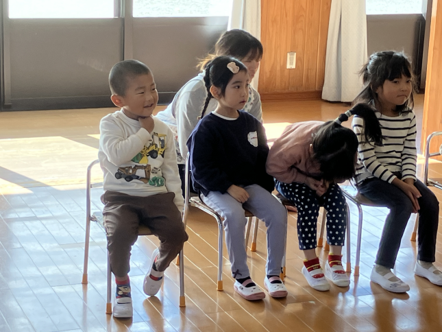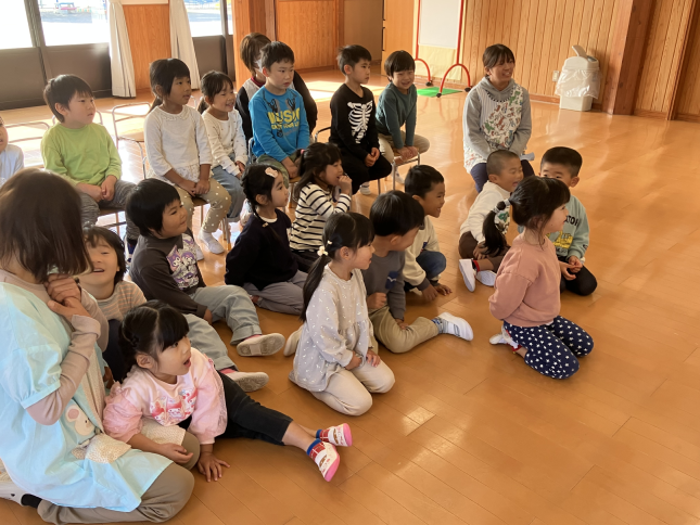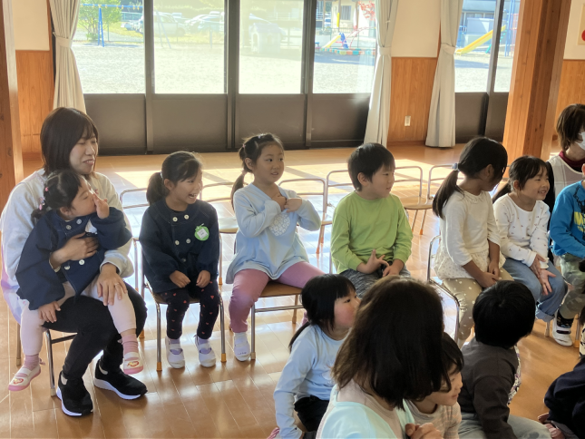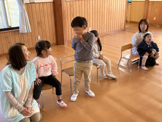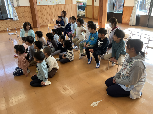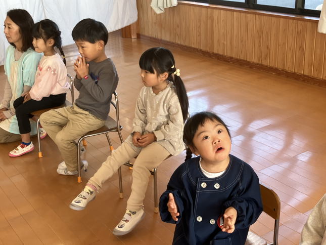 幼児組の誕生月の子は一人でした。みんなから祝福されちょっとはずかしいけどとってもうれしいです。回りのみんなもお祝いするのがとっても楽しい様子です。
