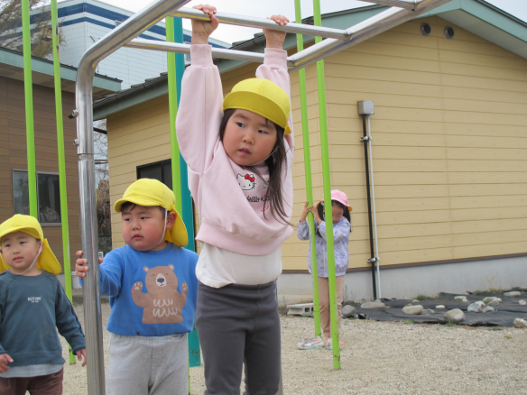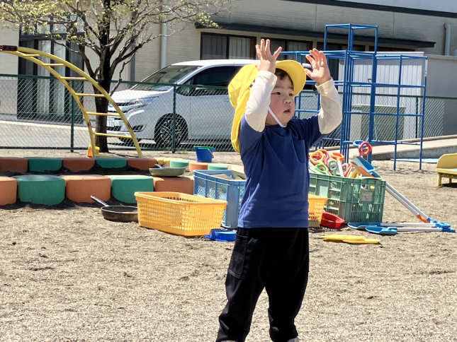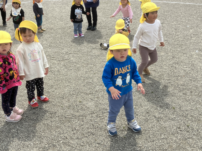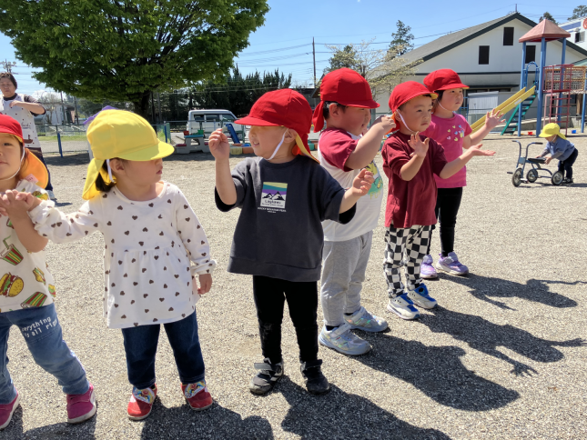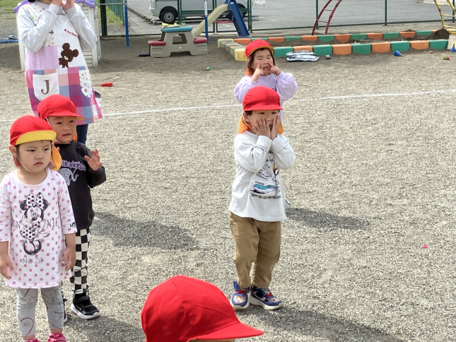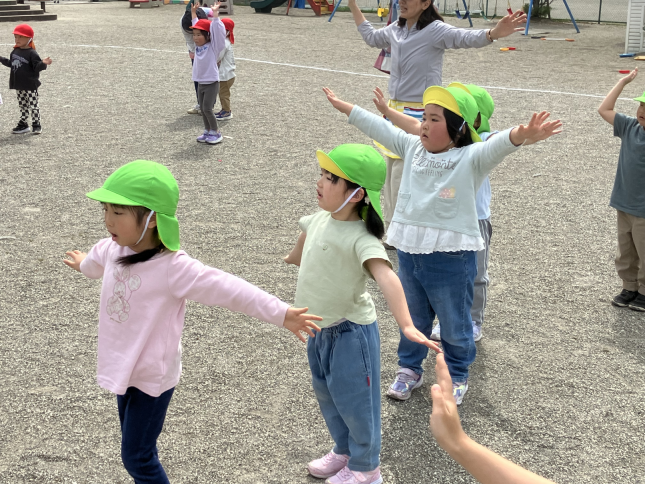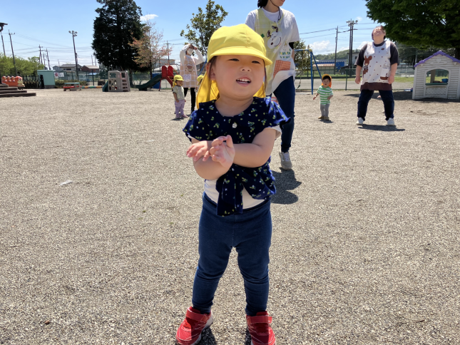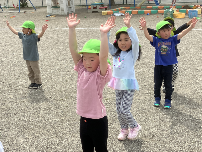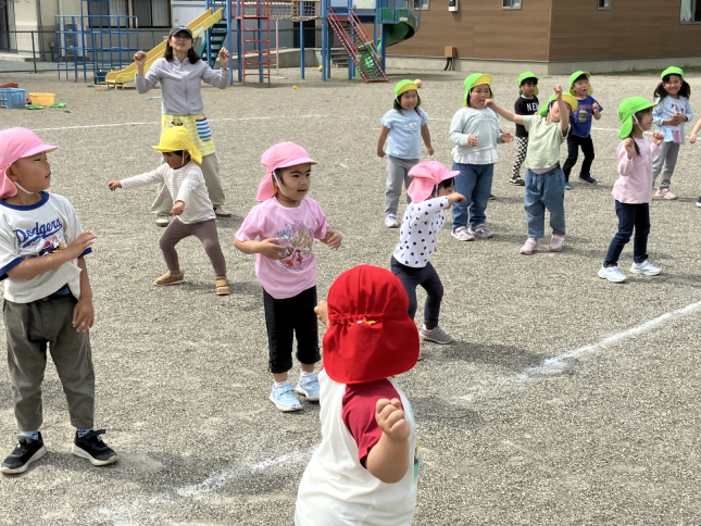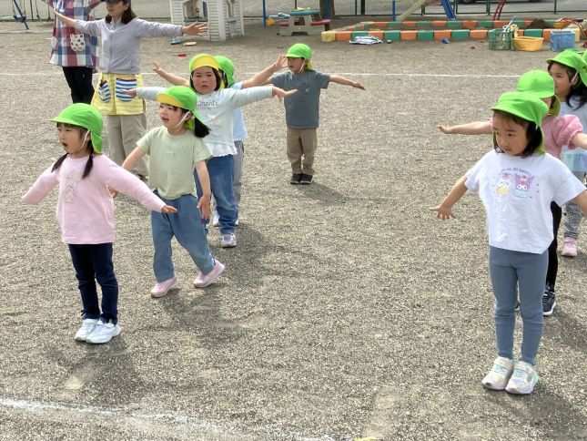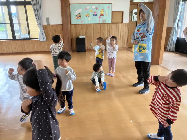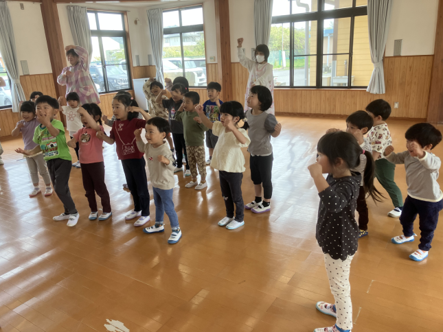 すみれ組の子や先生の動きを一生懸命真似てがんばろうとしています。これからもっともっと上手になっていくでしょう。