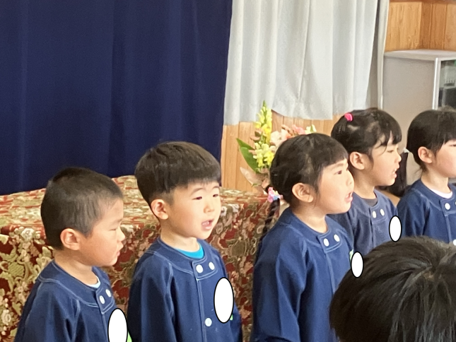 毎日修了式の練習をがんばっています。ばら組さん、すみれ組さんも参加してひまわり組さんの立派な姿に影響を受けています。