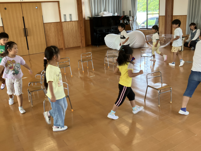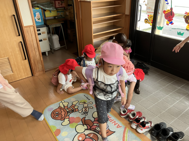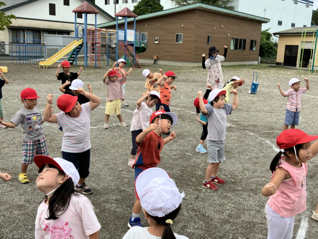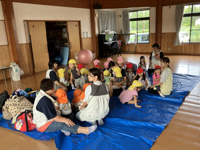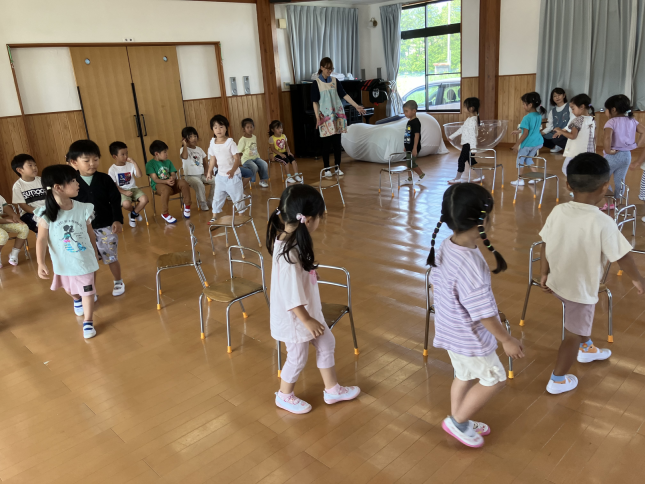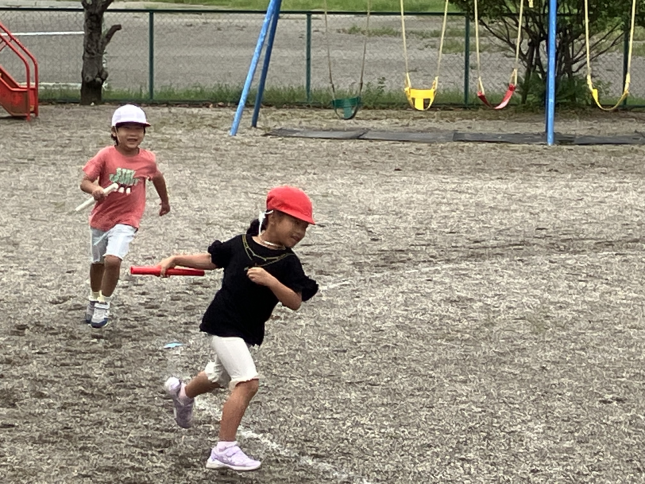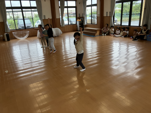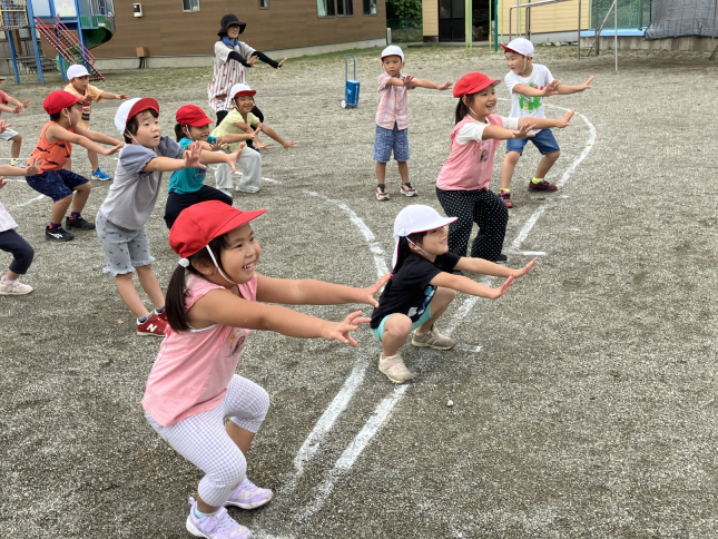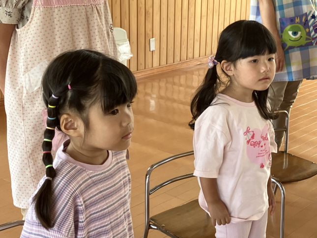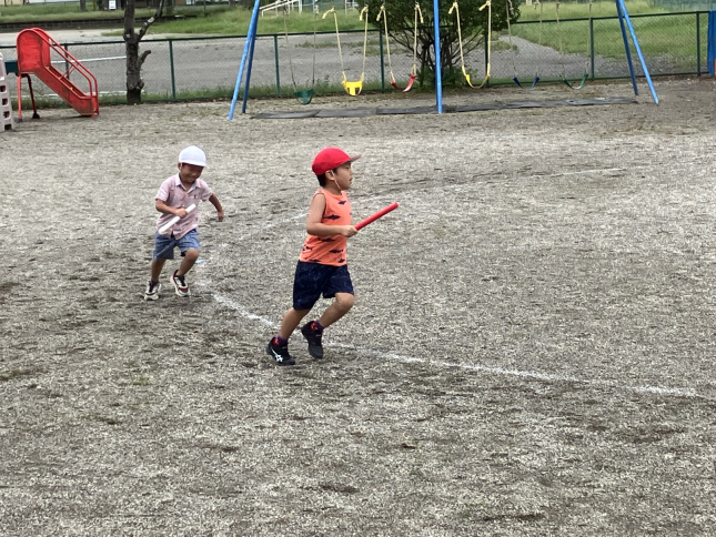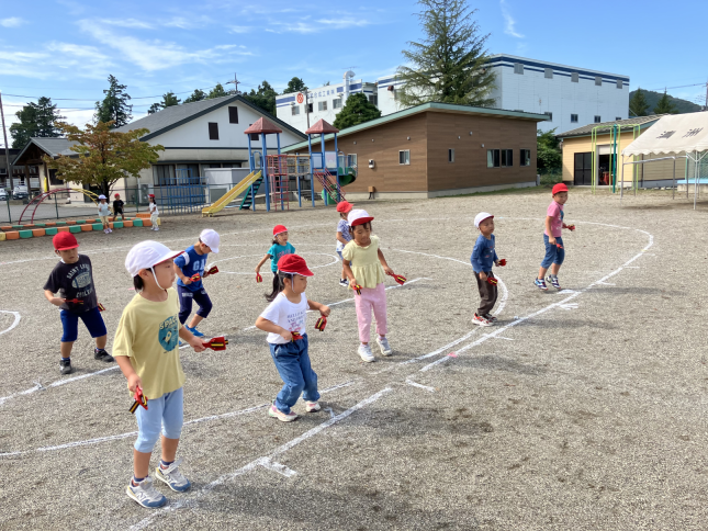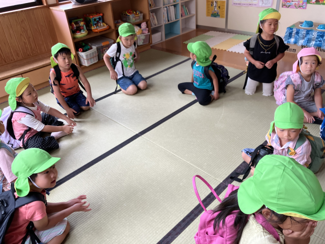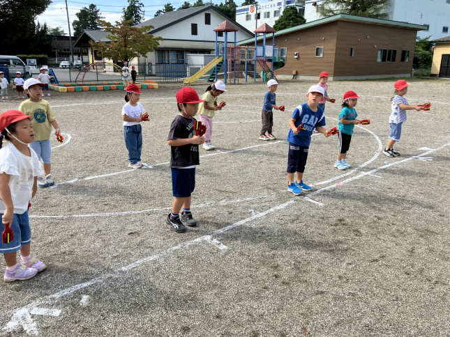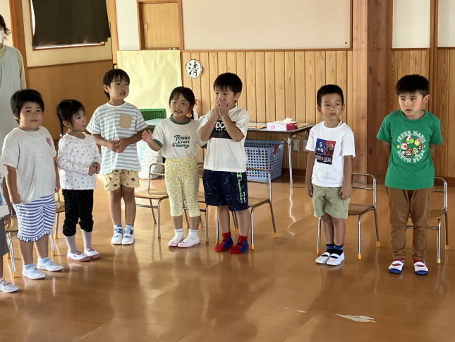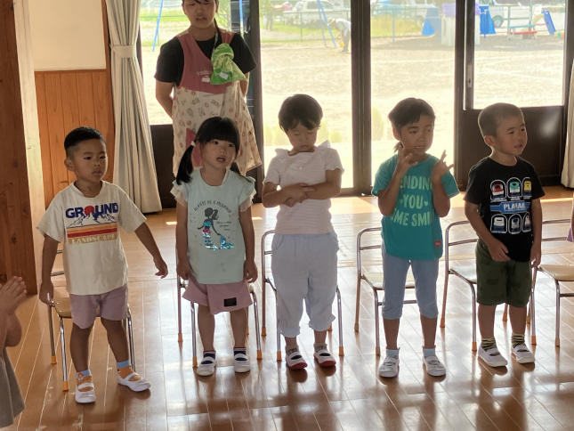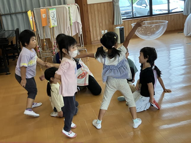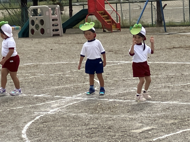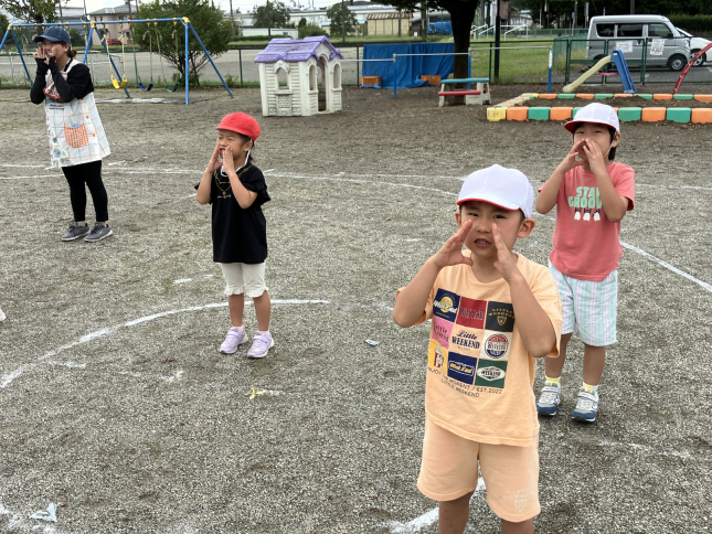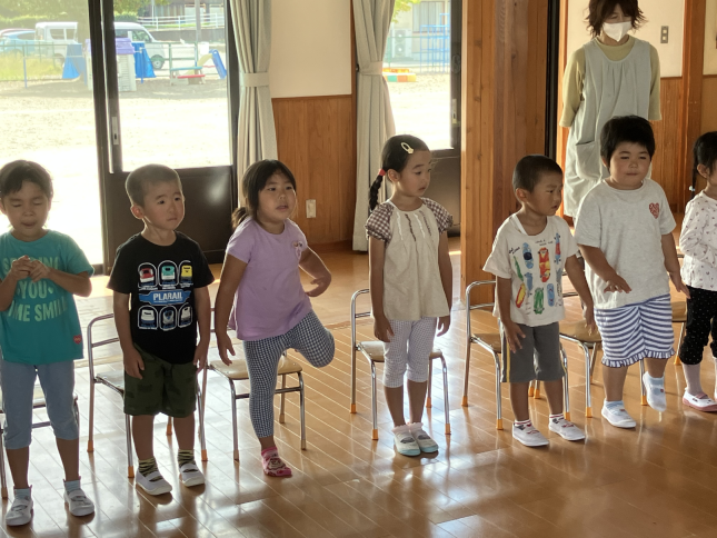 今日は雨でしたので屋内で練習をしました。ばら組は半分に分かれてお互いのリズムの動きをチェックし合いました。伝える対象が明確であるとモチベーションアップにつながります。