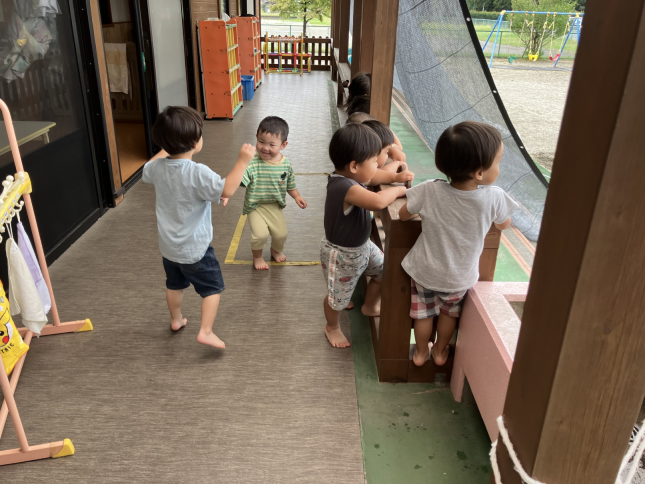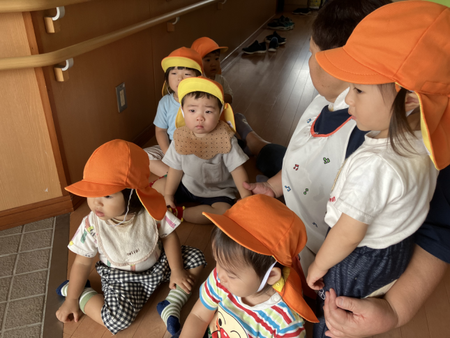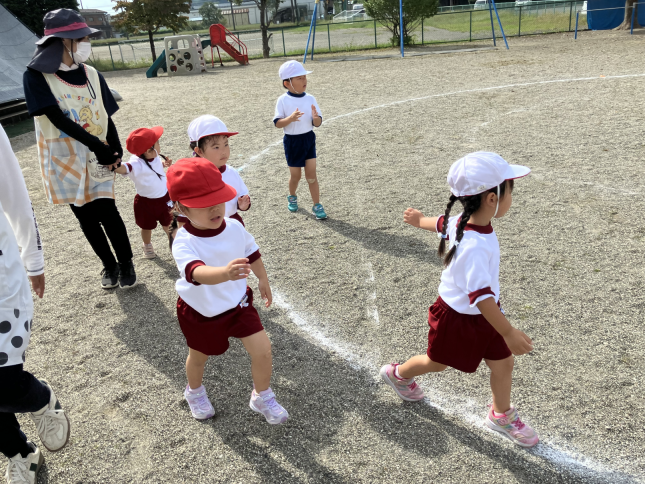 乳児組のみんなも運動会の練習に励んでいます。お友だちの練習もしっかり見ている様子に成長を感じます。