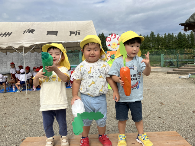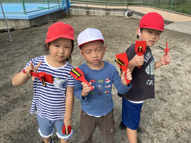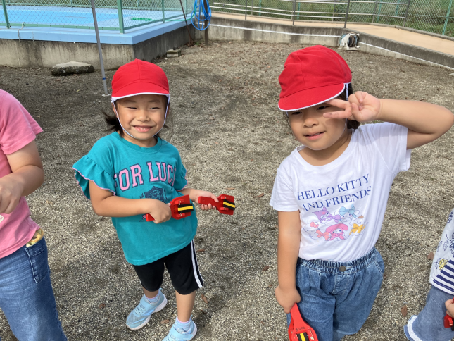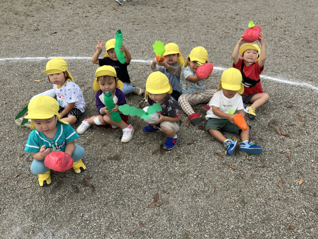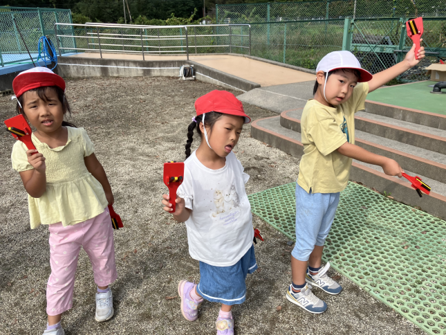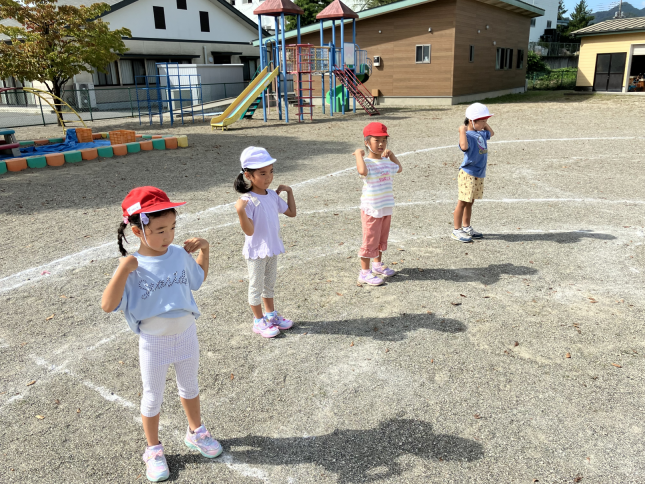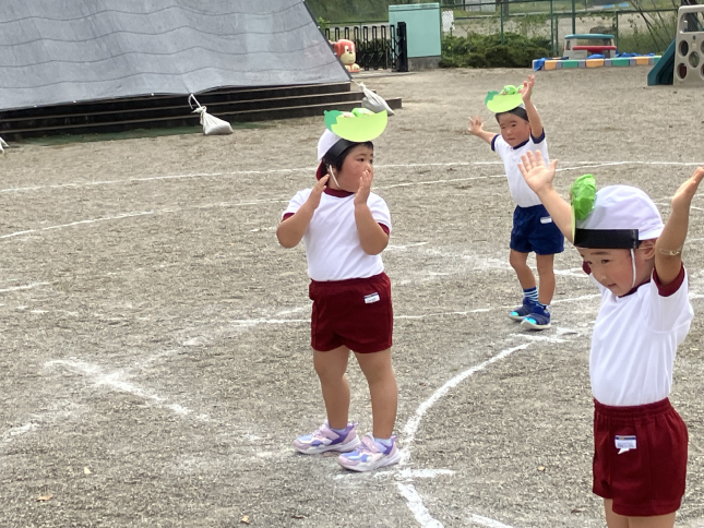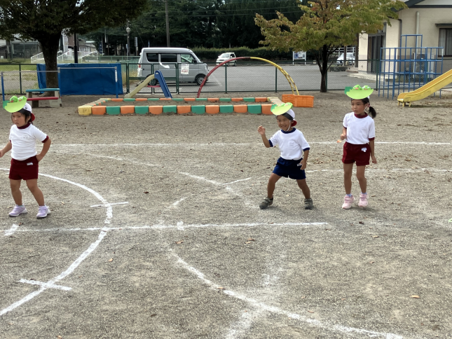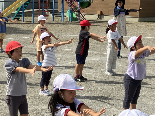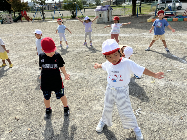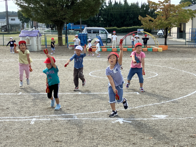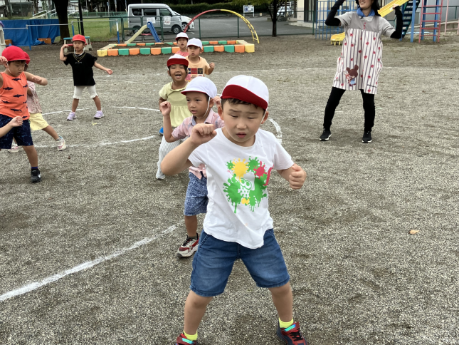 ひまわり組のみんなも気に入っているリズムです。鳴子を手にするとさらに気合が入りポーズを決めたくなります。