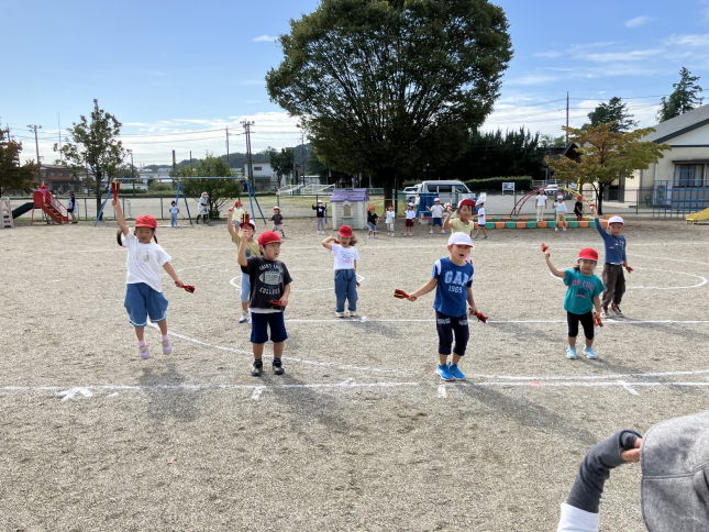 運動会予行練習をしました。ちょっと気温が高くて通して練習したためみんな疲れたと思います。一人ひとりががんばった分とても良い予行演習になりました。お家ではたくさんほめてあげてください。