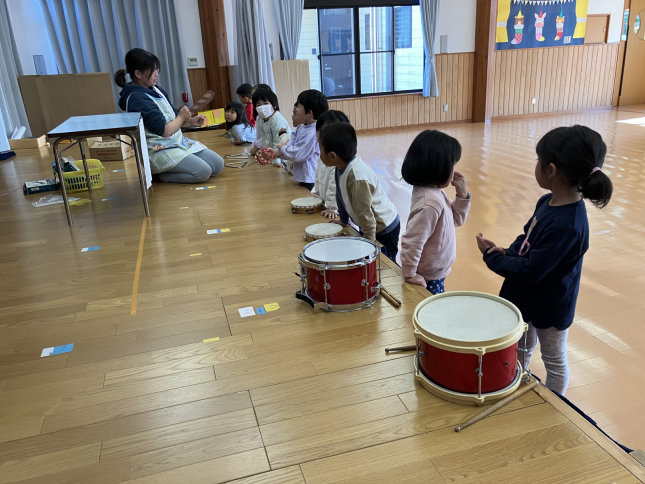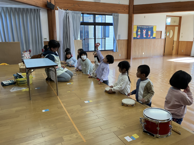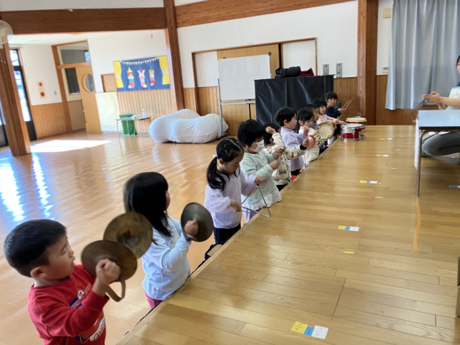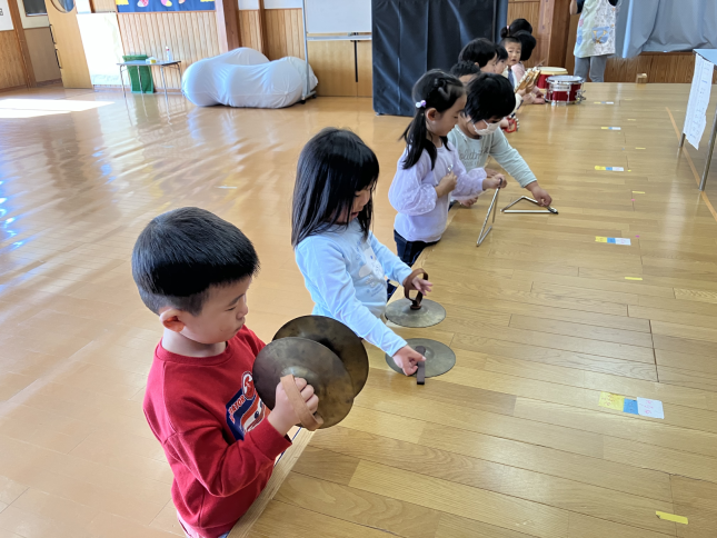 ばら組のみんなの合奏の練習です。リズムを刻みながらしっかりそろって演奏しています。一人ひとりの成長にびっくりです。