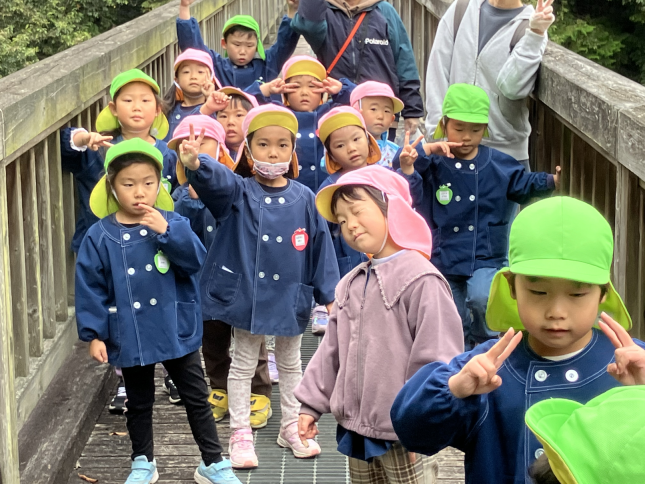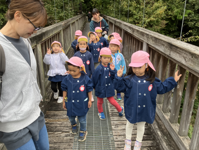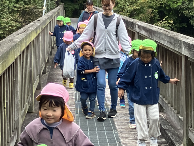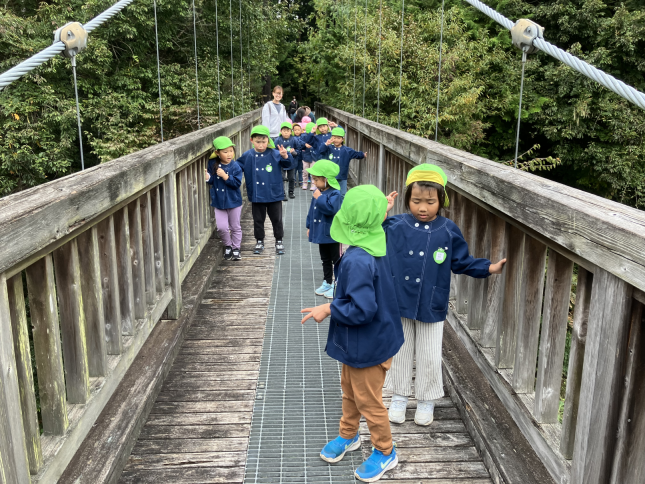 森を抜けるとそこには楽しい遊具が待っていました。みんなで遊んで自然に溶け込みました。