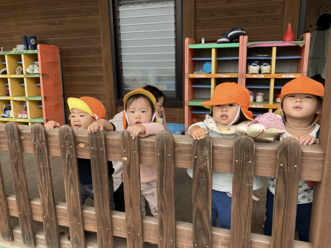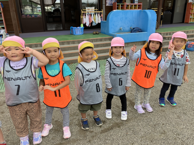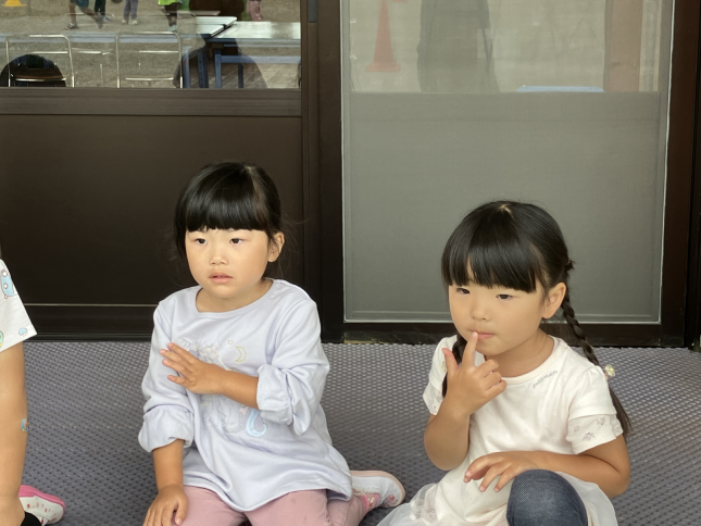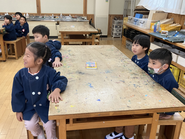 すみれ組の1日の始まりの様子です。みんなそろってご挨拶をして歌を歌い過ごします。気持ちいいスタートがきれそうです。