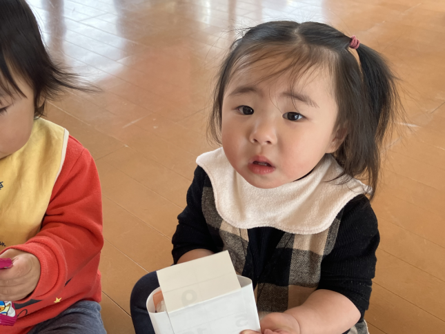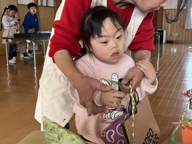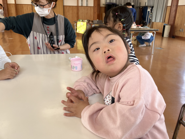たんぽぽ組になると各自でお買い物ができるようになります。好きな物を選んだりお礼を言ったりと大きな成長を感じます。身近なお友だちと交流することで安心感、信頼感、愛情が芽生えてきます。