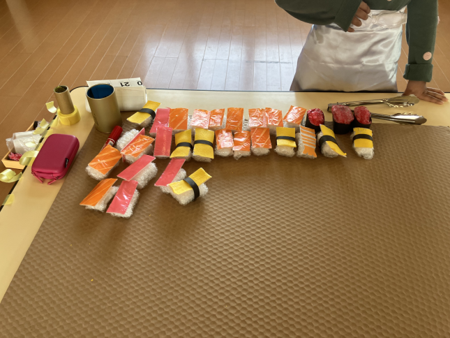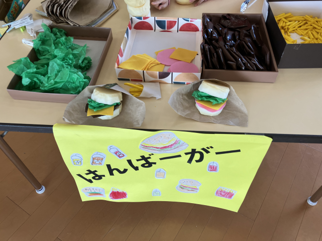 すみれ組のみんなは一緒に買い物したり、レストランで過ごしたりしておみせやさんの活動を楽しみました。ひまわり組さんとのやり取りもしっかりできてお話を楽しんでいました。