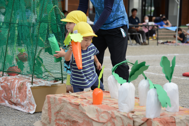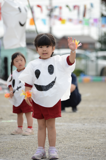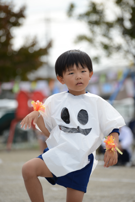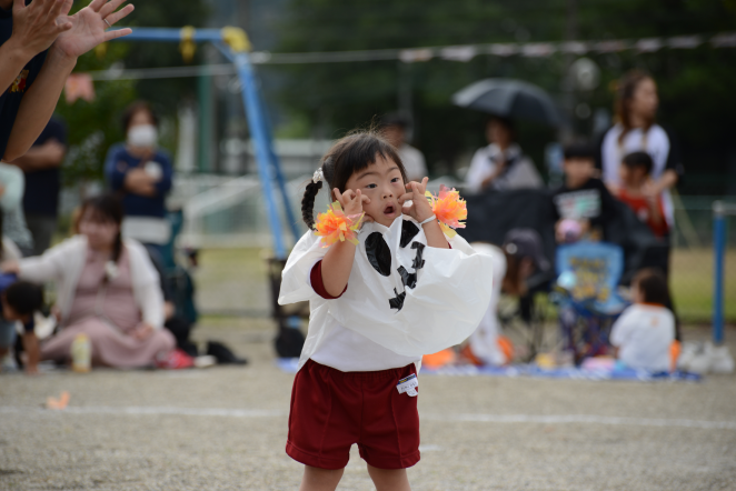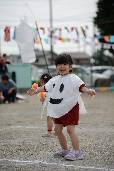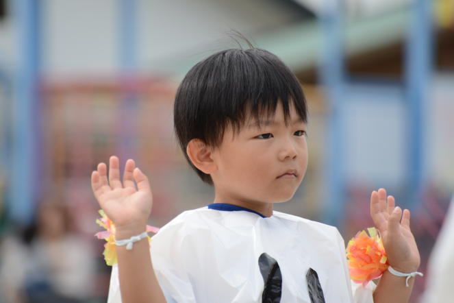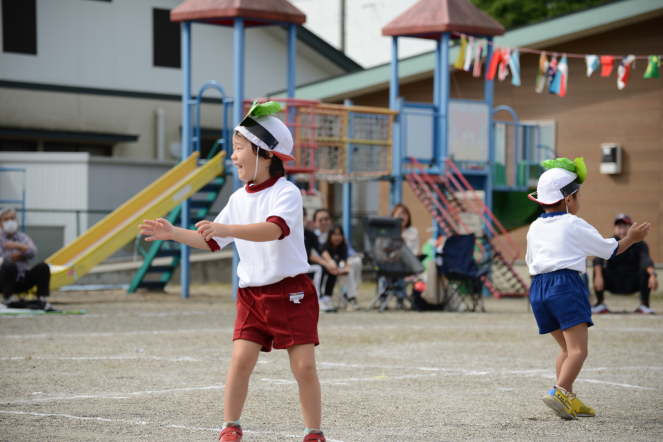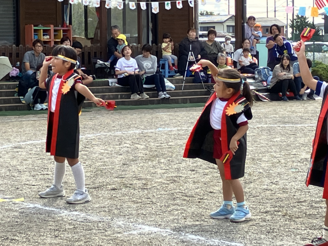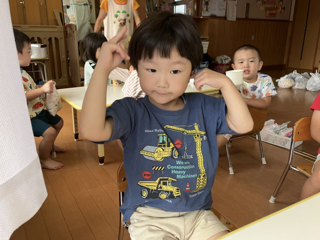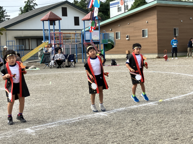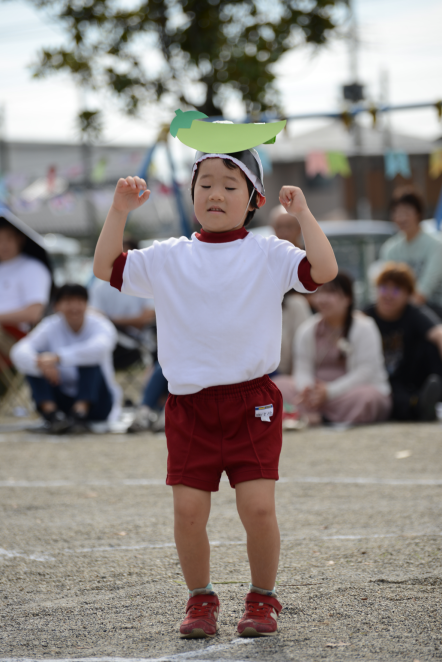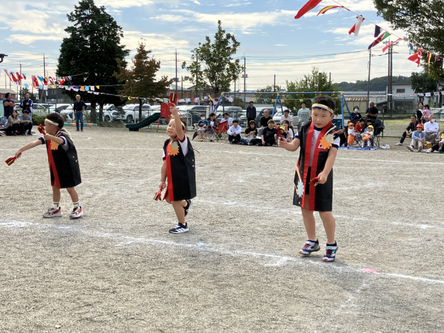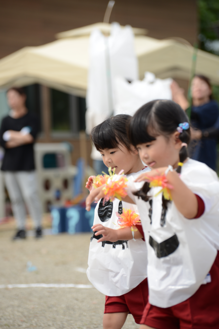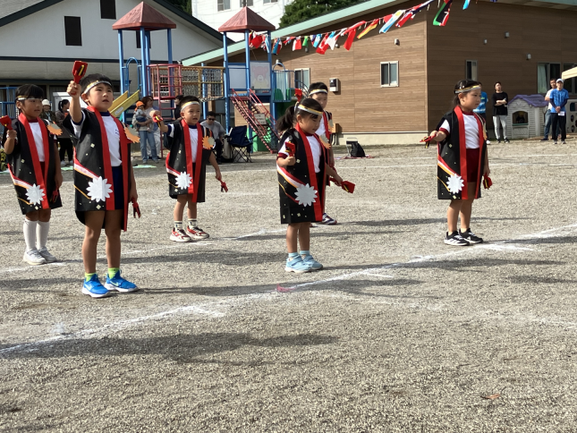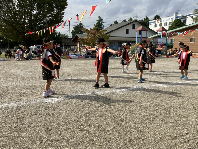 ひまわり組のみんなも気に入っているリズムです。鳴子を手にするとさらに気合が入りポーズを決めたくなります。