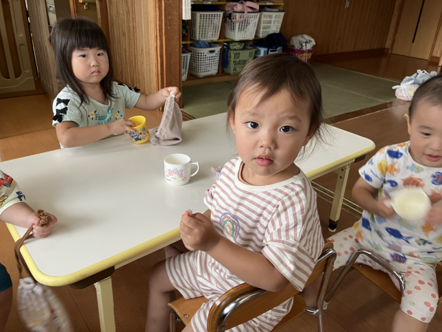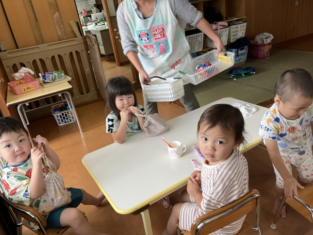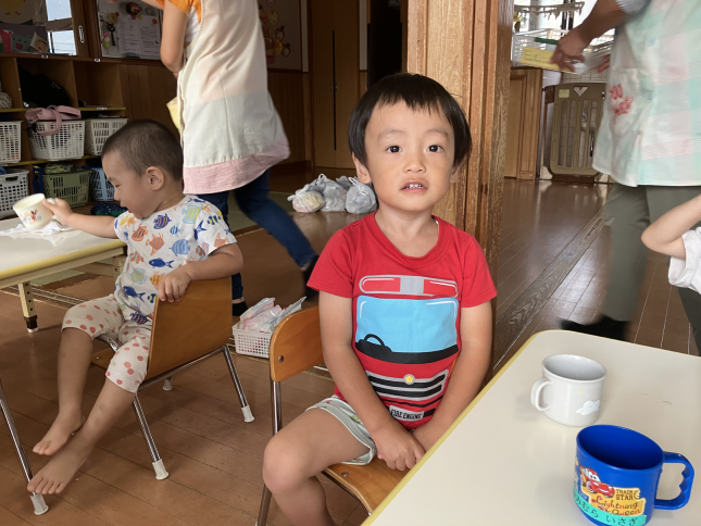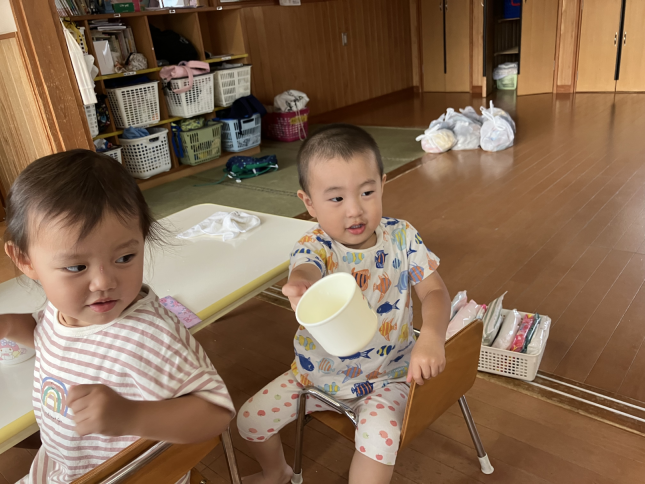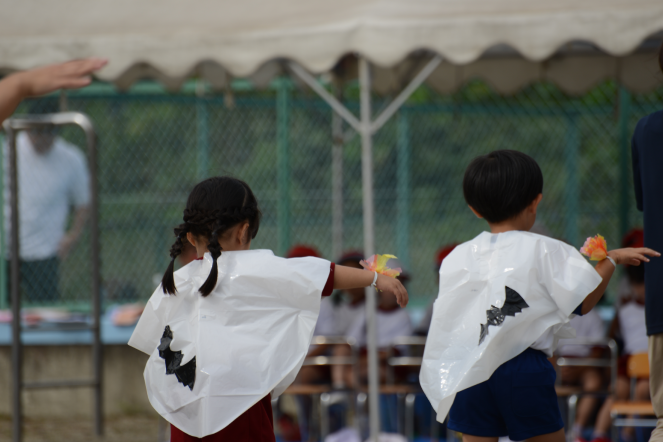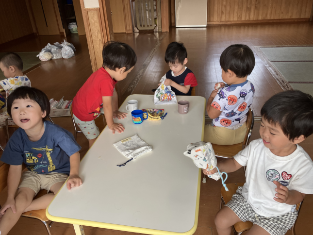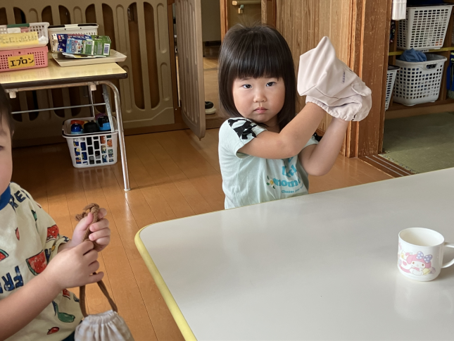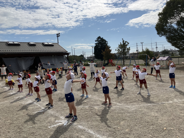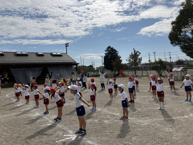 今日は雨でしたので屋内で練習をしました。ばら組は半分に分かれてお互いのリズムの動きをチェックし合いました。伝える対象が明確であるとモチベーションアップにつながります。