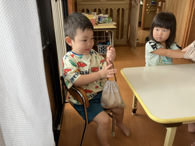明日の運動会を前にたんぽぽ組のみんなは張り切っています。少し緊張気味の子もいます。また闘志を燃やしている子もいます。