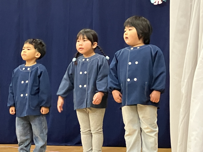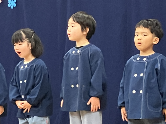 すみれ組の歌が始まりました。季節感あふれる「湯気の朝」タイムリーな「やったさんたがやってきた」です。