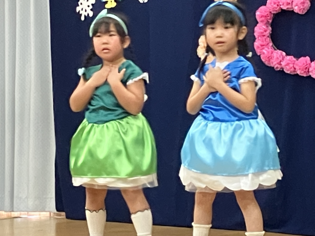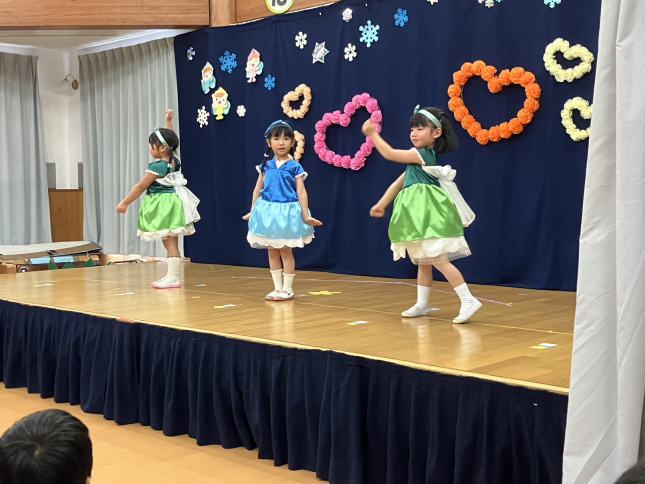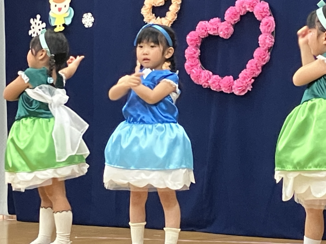 ばら組の発表会です。「かわいいだけじゃだめですか」の曲に合わせ踊ります。各々自分で考えた動きを入れていました。