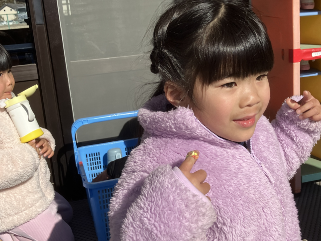 風の強い日が続いていますが元気いっぱい風を利用した遊びをがんばっています。他のクラスでも凧あげをしていたのですみれ組のみんなも自ら「やりたい」ということで外に飛び出しました。