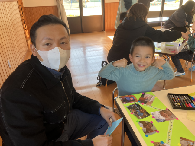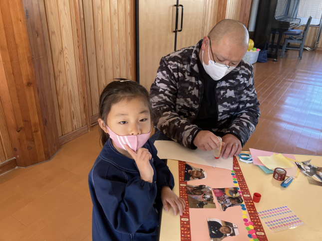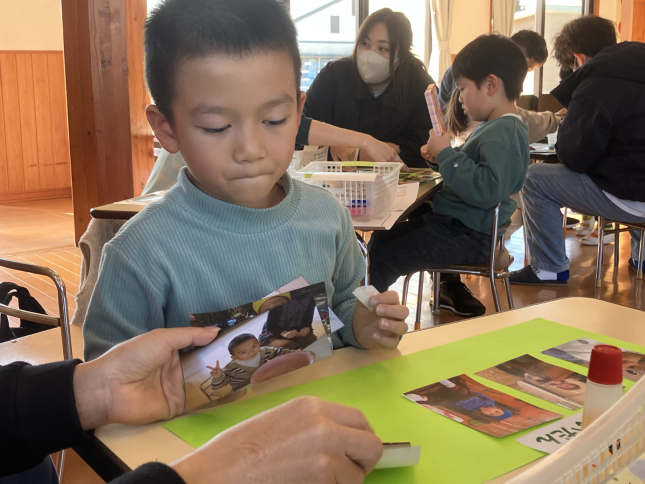 ひまわり組の保護者の方々にはお忙しいところありがとうございました。ひまわり組では入園したころの写真から現在までの写真を用紙に貼り付け自分の成長を実感しました。お家の人と一緒の活動は穏やかに楽しく進みました。ご協力くださり子供たちもみんな喜んでいました。