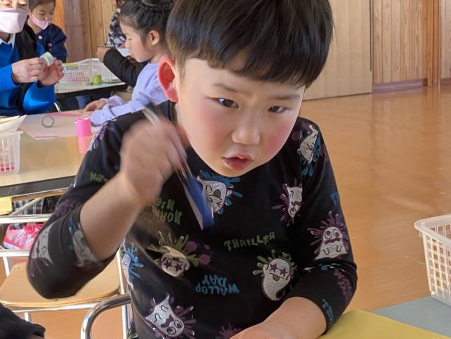保育参加に向けてばら組のみんなは一生懸命集中して制作活動に励んでいます。4月から年長さんになる自覚もあり、なんのために作るのか、めあてが明確なこともありがんばっています。頼もしいですね。