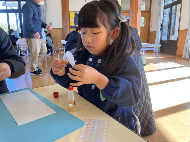 ばら組の保護者の方々にも保育参加にご協力いただきありがとうございます。みんなとっても喜んで活動しました。最初は製作をしました。今日もみんな真剣に集中して取り組みました。