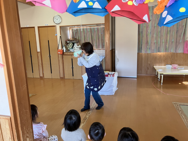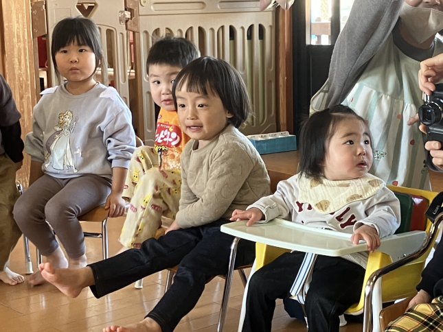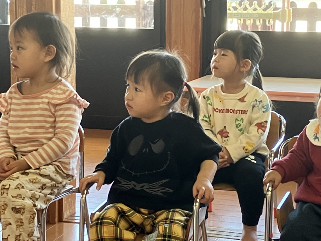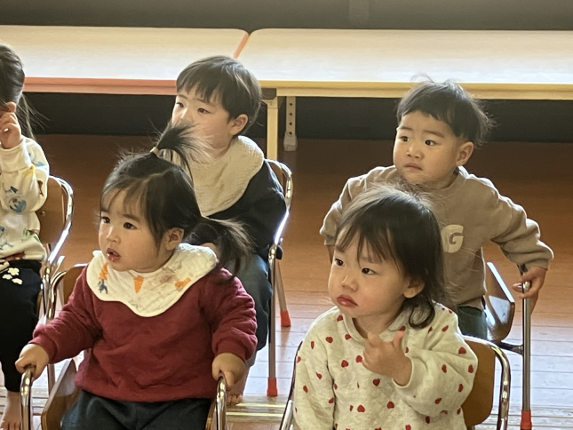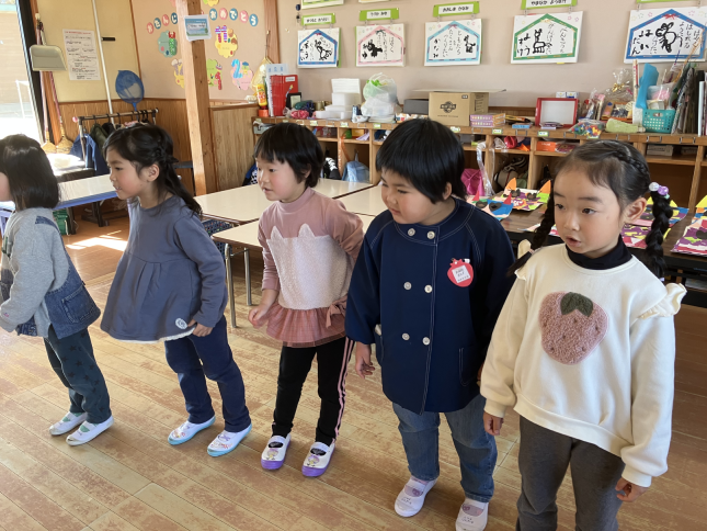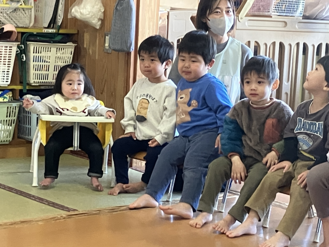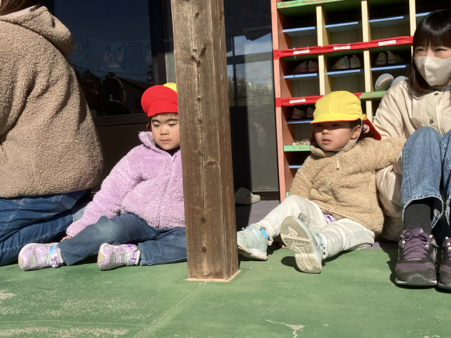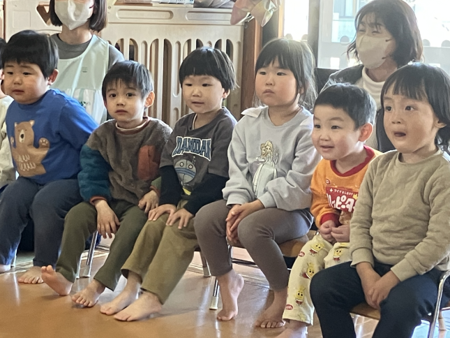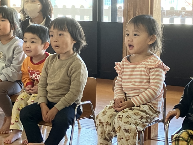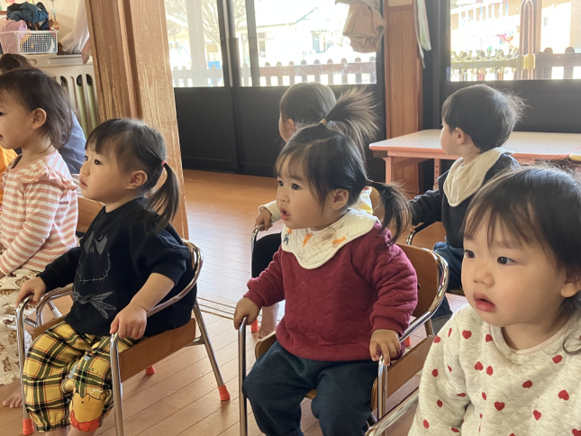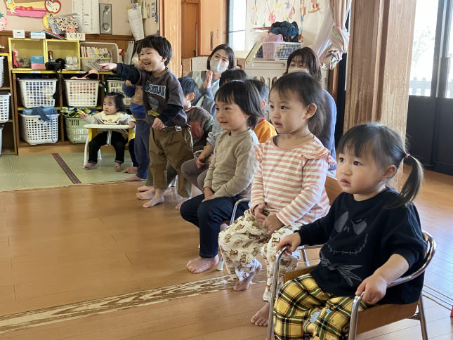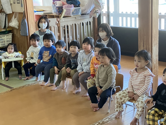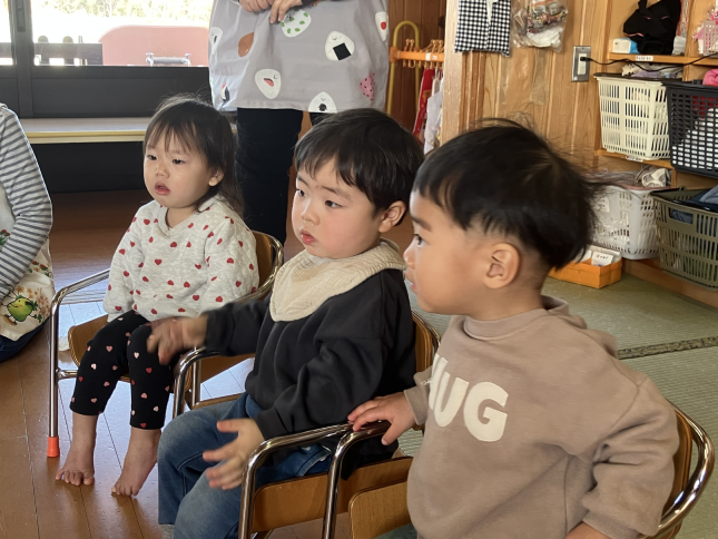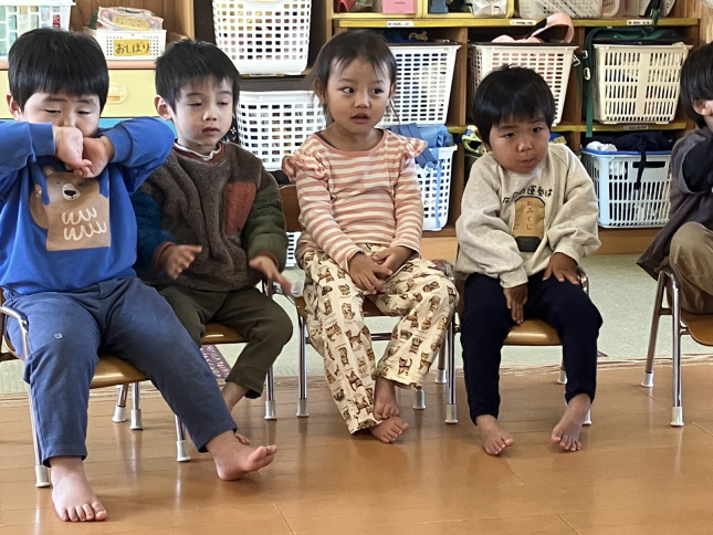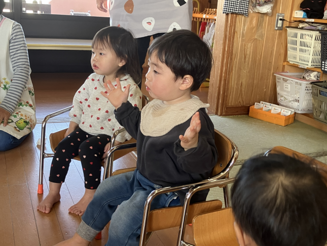 つくし組の保育参加ではお忙しいところありがとうございます。みんな大喜びで楽しく活動できました。お家の人が一緒だと張り切ってがんばりました。
