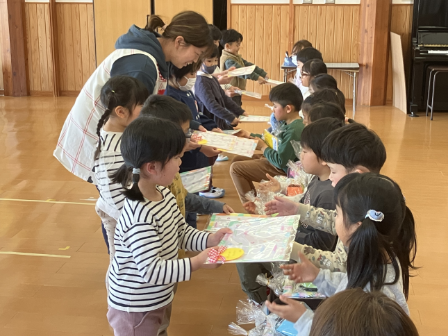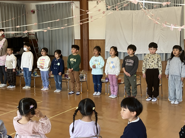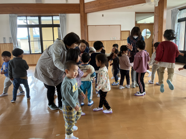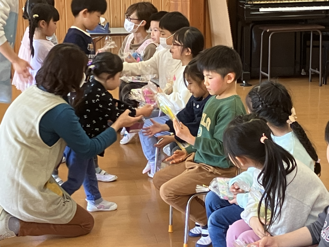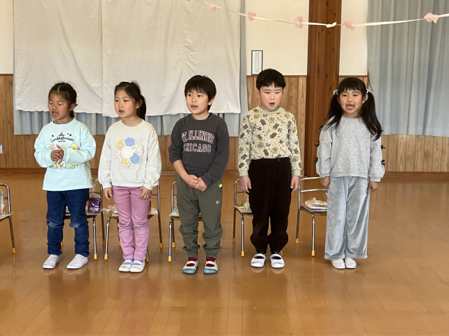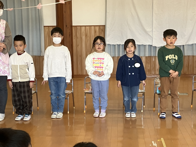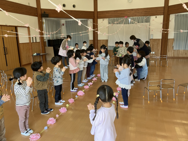 ひまわり組のみんなのお別れ会をしました。たくさんの催しがあり楽しめました。みんなの心のこもった言葉かけや楽しい表情が印象的なお別れ会でした。こうしてお世話になったひまわり組さんのいいところを再確認することは心に深く刻まれますし、もっともっとひまわり組さんを好きになります。