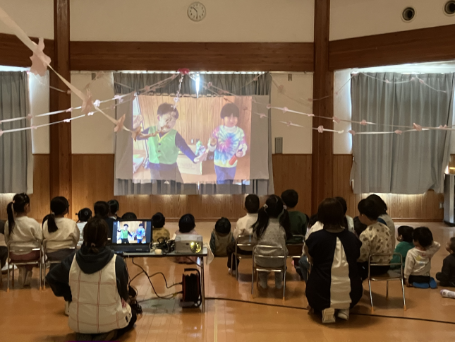 落合先生に来ていただきリズム遊びをしました。みんな笑顔で楽しいひとときを過ごせました。ありがとうございます。